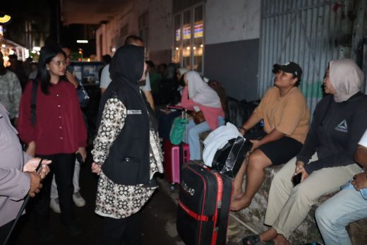 Pramoedya.id: Walikota Bandar Lampung Hj. Eva Dwiana meninjau langsung kondisi arus balik Lebaran 2025 di Pool Damri Stasiun Tanjung Karang, Minggu malam (6/4/2025).