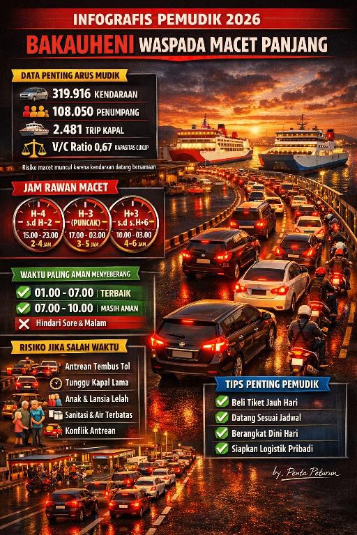 Tanpa perencanaan waktu yang baik, antrean kendaraan berpotensi memanjang hingga ruas tol. Waktu tunggu di pelabuhan dapat meningkat drastis, disertai tekanan terhadap fasilitas umum seperti toilet, air bersih, dan layanan kesehatan.