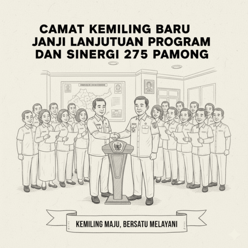 Pramoedya.id: Kantor Kecamatan Kemiling di Bandar Lampung menjadi saksi acara pisah sambut Camat dari Andi Darma Putra kepada Andi Syaputra Kesuma pada Senin (20/10/2025). Transisi kepemimpinan ini dihadiri sembilan lurah, Ketua RT, dan Kepala Lingkungan (Kaling) dalam suasana penuh kekeluargaan.