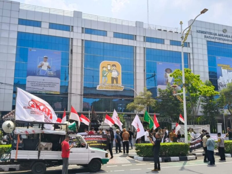 Pramoedya.id: Ratusan massa dari berbagai organisasi kemasyarakatan asal Lampung yang tergabung dalam Triga, meliputi DPP Akar Lampung, DPP Pematank, Aliansi Keramat, serta didukung puluhan mahasiswa, menggelar aksi demonstrasi di Kantor Kementerian ATR/BPN RI, Senin (2/12/2025). Massa menuntut pembatalan seluruh HGU PT Sugar Group Companies (SGC) yang dinilai cacat hukum serta merugikan negara.