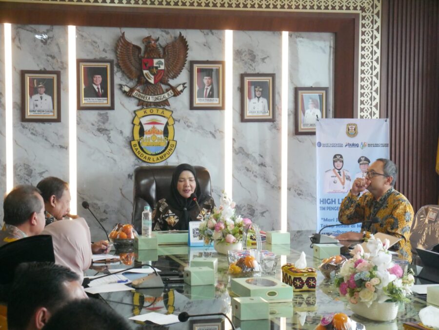 Pramoedya.id: Wali Kota Bandar Lampung, Eva Dwiana, memimpin rapat High Level Meeting (HLM) Tim Pengendalian Inflasi Daerah (TPID) Kota Bandar Lampung di ruang rapat wali kota, Jumat (13/2/2026).