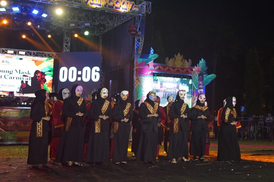 Pramoedya.id: Universitas Islam Negeri (UIN) Raden Intan Lampung (RIL) kembali ambil bagian dalam perhelatan budaya tahunan Lampung Mask Street Carnival, rangkaian utama Krakatau Festival (K-Fest) ke-34. Acara berlangsung meriah di Lapangan Korpri, Komplek Kantor Gubernur Lampung, Sabtu, 5 Juli 2025.