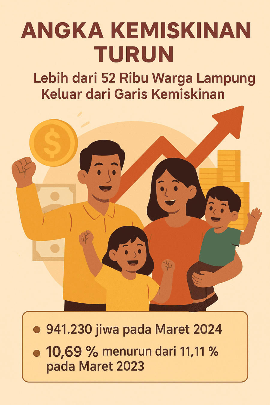 Pramoedya.id: Badan Pusat Statistik (BPS) Provinsi Lampung mencatat penurunan signifikan dalam jumlah penduduk miskin. Per Maret 2024, jumlah warga miskin di provinsi ini tercatat sebanyak 941.230 orang, turun lebih dari 52 ribu jiwa dibandingkan periode sebelumnya.
