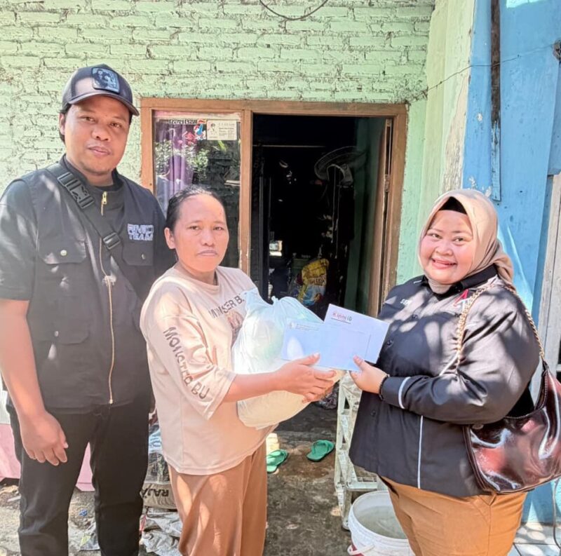 Pramoedya.id: Anggota DPRD Kota Bandar Lampung, Dewi Mayang Suri Djausal, menyalurkan bantuan logistik bagi warga terdampak banjir di Gang Walet, Kelurahan Tanjung Agung Raya, Kecamatan Kedamaian, Kamis (16/4/2026).