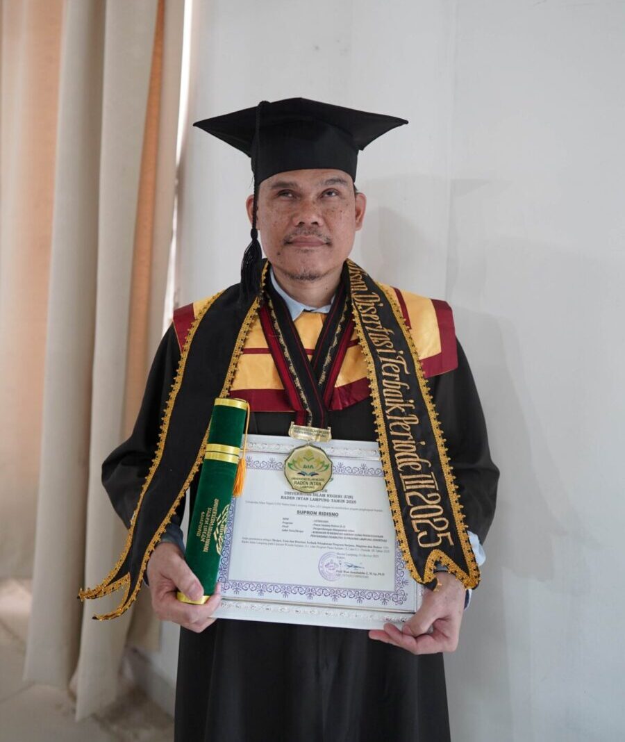 Pramoedya.id: Ketekunan dan semangat belajar tanpa batas ditunjukkan oleh Supron Ridisno, difabel dengan keterbatasan penglihatan, yang berhasil meraih penghargaan Disertasi Terbaik pada Wisuda Periode III Tahun 2025 Universitas Islam Negeri (UIN) Raden Intan Lampung. Dalam Sidang Senat Terbuka, Kamis (16/10/2025), Rektor Wan Jamaluddin secara resmi menobatkan Supron sebagai penerima penghargaan tersebut.