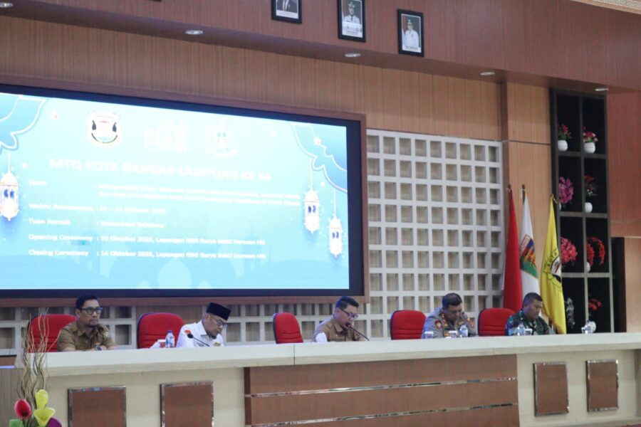 Pramoedya.id: Persiapan Musabaqah Tilawatil Qur’an (MTQ) Tingkat Kota Bandar Lampung Ke-54 Tahun 2025 memasuki tahap akhir yang krusial. Mewakili Pemerintah Kota (Pemkot), Staf Ahli Bidang Pemerintahan dan Hukum, Sukarma Wijaya, memimpin rapat koordinasi di Aula Gedung Semergou pada Senin (06/10/2025). Rapat tersebut berfokus pada pematangan tugas dan tanggung jawab setiap seksi panitia, memastikan perhelatan akbar tersebut berjalan tanpa hambatan.