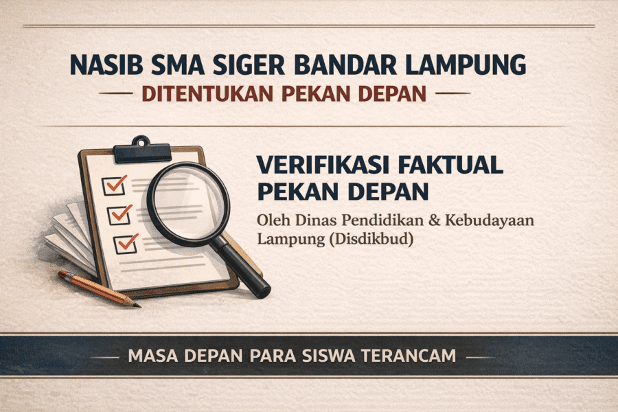 Pramoedya.id: Nasib SMA Siger Bandar Lampung akan diputuskan pekan depan melalui verifikasi faktual oleh Dinas Pendidikan dan Kebudayaan (Disdikbud) Lampung.