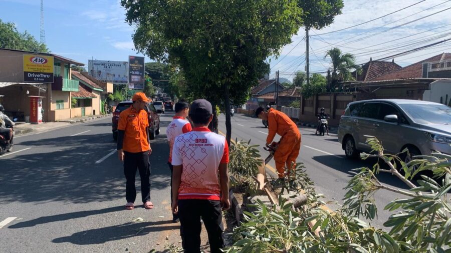 Pohon Tumbang Halangi Jalan Teuku Umar, BPBD Bandar Lampung Bertindak Cepat