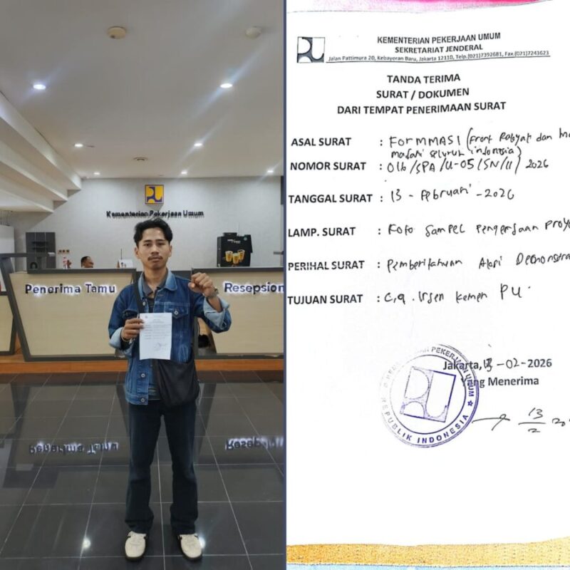 Pramoedya.id: Front Rakyat dan Mahasiswa Madani Seluruh Indonesia (FORMMASI) memastikan akan mengepung kantor Kementerian Pekerjaan Umum (PU) dan Komisi Pemberantasan Korupsi (KPK) pada pekan depan. Langkah ini diambil sebagai bentuk protes keras terhadap lambannya penanganan proyek infrastruktur irigasi di bawah Balai Besar Wilayah Sungai Mesuji Sekampung (BBWS MS) yang dinilai amburadul.