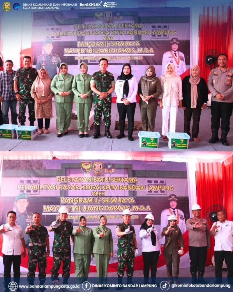 Pramoedya.id: Wali Kota Eva Dwiana secara resmi melakukan peletakan batu pertama sebagai tanda dimulainya proyek revitalisasi Pasar Koga, Rabu (21/5/2025). Kegiatan ini jadi tonggak awal pembangunan kembali salah satu pusat ekonomi rakyat penting di Bandar Lampung.