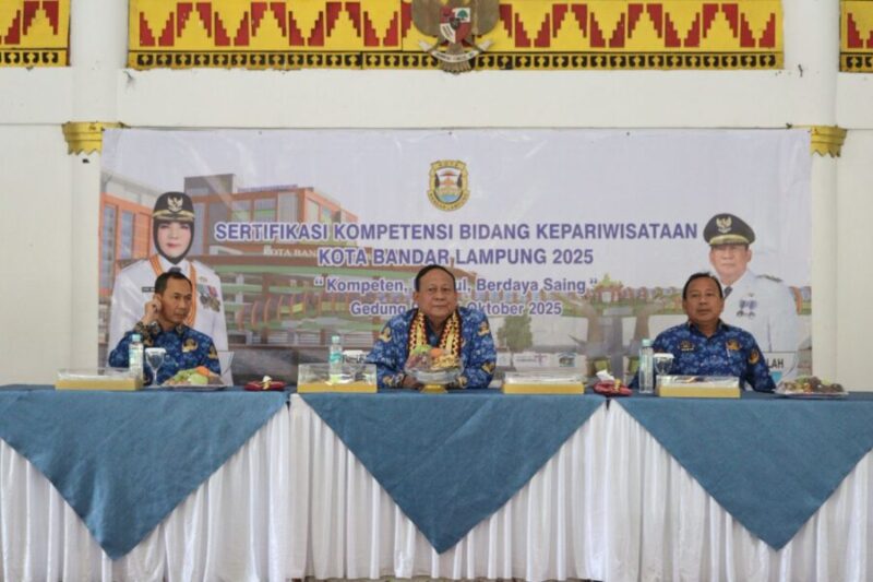 Wakil Wali Kota Dedy Amarullah menghadiri langsung kegiatan Fasilitasi Sertifikasi Kompetensi bagi Tenaga Kerja Bidang Pariwisata Tahun 2025 yang digelar di Gedung PKK Kota Bandar Lampung pada Rabu (1/10/2025). Kegiatan ini merupakan upaya konkret Pemkot untuk membekali tenaga kerja lokal agar mampu bersaing di pasar yang semakin ketat.