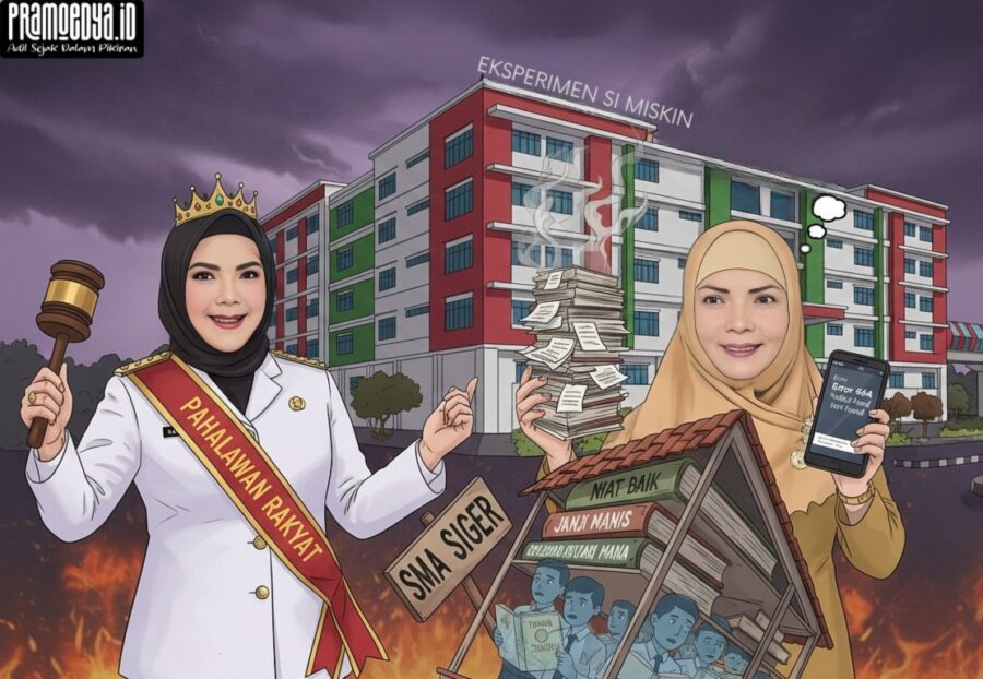 Pramoedya.id: Menjadi miskin di Bandar Lampung rupanya punya risiko tambahan: nasibmu sewaktu-waktu bisa dijadikan bahan eksperimen kebijakan. Di bawah narasi heroik bernama SMA Siger, anak-anak dari keluarga prasejahtera dipaksa masuk ke sebuah laboratorium politik. Mereka disuruh sekolah, duduk di kelas, dan belajar sungguh-sungguh di sebuah institusi yang secara hukum “tidak ada”.
