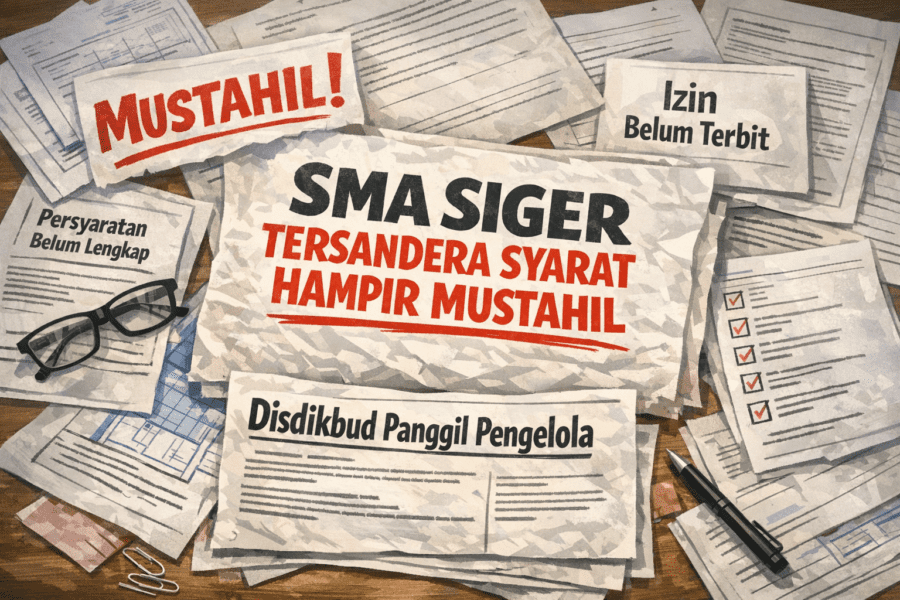 Setelah penjelasan resmi Disdikbud tersebut, muncul keterangan tambahan dari narasumber internal yang enggan disebut namanya. Berdasarkan informasi yang diperoleh, terdapat sejumlah syarat perizinan yang dinilai hampir mustahil dipenuhi oleh Yayasan Siger Prakarsa Bunda.