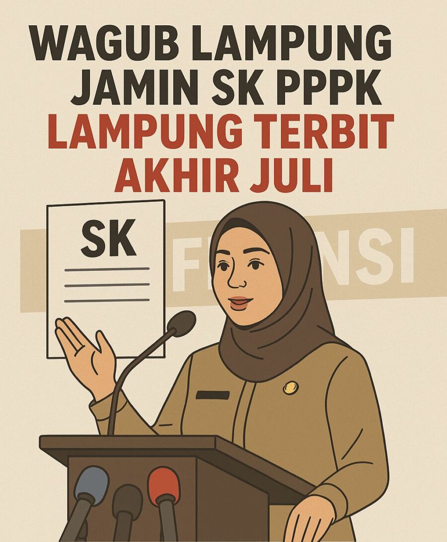 Pramoedya.id: Ribuan Pegawai Pemerintah dengan Perjanjian Kerja (PPPK) Provinsi Lampung bisa sedikit bernapas lega. Wakil Gubernur Lampung, Jihan Nurlela, menjamin surat keputusan (SK) mereka akan diterbitkan paling lambat akhir Juli 2025. Penegasan ini disampaikan Jihan dalam konferensi pers di Bandar Lampung, Selasa (8/7).
